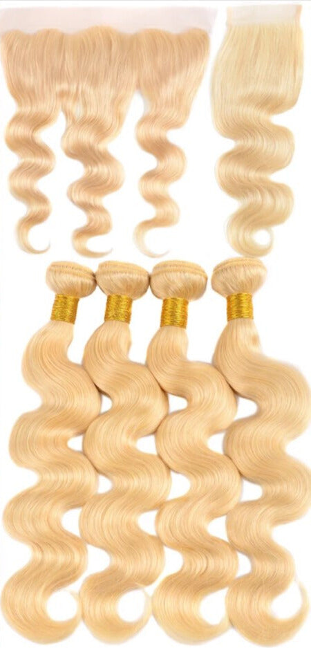 The 613 human hair bundles with 13x4 fine, thin lace frontal are perfect for those looking for thick, full hair. They can be easily dyed and have minimal to no shedding. Additionally, this unprocessed hair is available in a beautiful blond 613 color.
