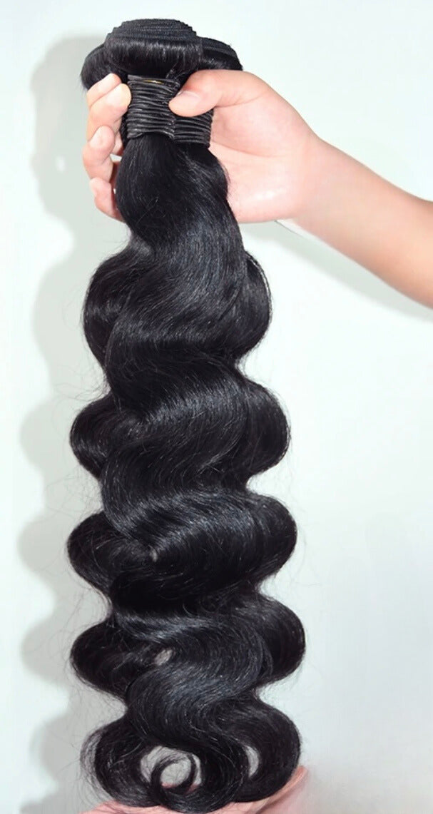 This human hair bundle has a bodywave texture that is smooth and lustrous, with ample volume. It is made from unprocessed Peruvian hair and has minimal to no shedding, ensuring long-lasting results. Each bundle weighs approximately 100g.