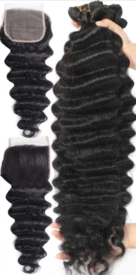 Our Malaysian deep wave bundles come with a thin, transparent lace frontal that adds bounce and shine to your curls. Made with unprocessed human hair, these bundles can be dyed and bleached to your liking. The thin lace ensures a natural and seamless look.