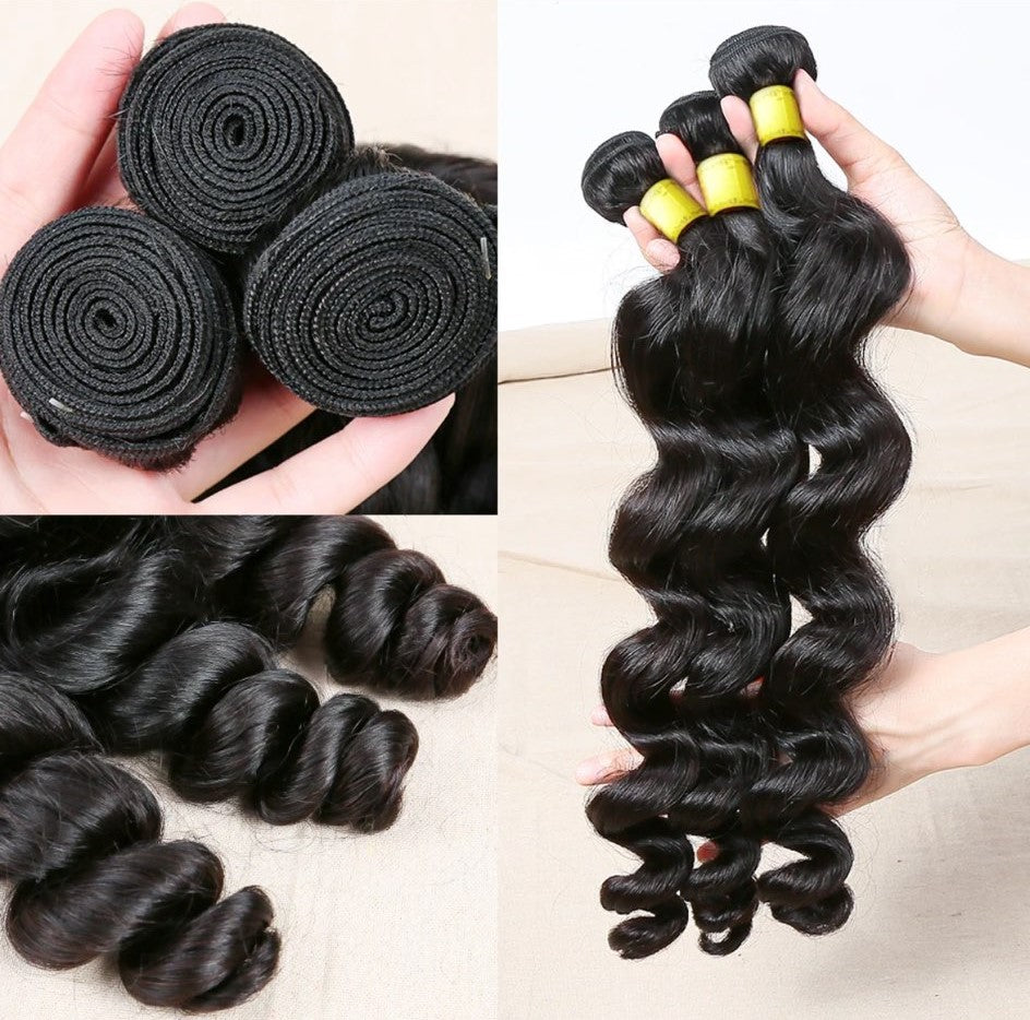 Experience the luxurious, long-lasting quality of our Malaysian loose wave bundles. Made from unprocessed human hair, these bundles are silky, shiny, and bouncy with minimal to no shedding. Each bundle weighs an average of 100g, providing you with enough hair for any desired look. Plus, our high-quality hair can withstand dyeing and bleaching for ultimate versatility. Trust in our expertise as industry leaders to provide you with the best hair for your needs.